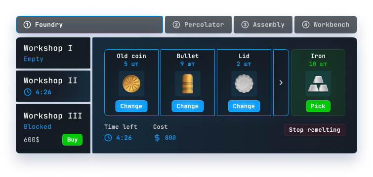 Разработка интерфейсов для взаимодействий игроков на сервере.
